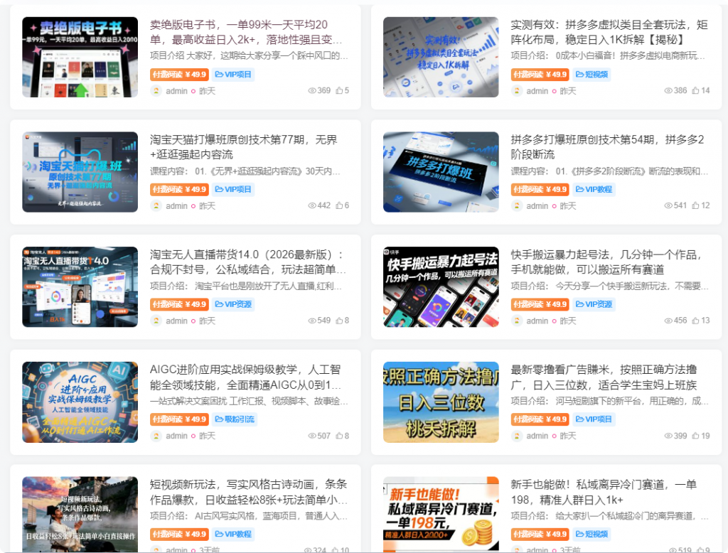 五、赚钱驿站,提供全网最新最全的教程下载