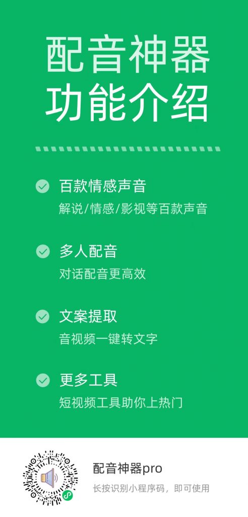 二、抖音快手热门视频配音发源地,手机点击免费体验配音神器:https://api.peiyinshenqi.club/u/vBu7m